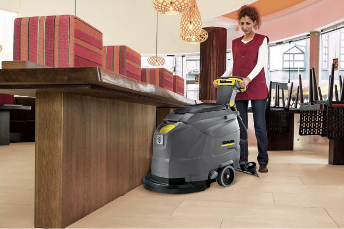 La fregadora-aspiradora BD 43/35 C Ep *UL: cuenta con tecnología de cepillos circulares de esponja consigue hasta 1700 m²/h, incluso con una alimentación de tensión baja de 120 V / 60 Hz.